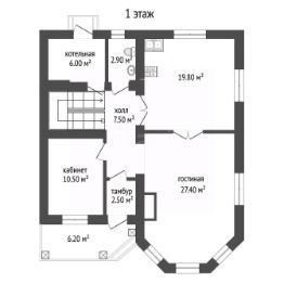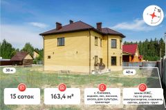 Этот уютный дом площадью 152,2 кв.м. расположен на просторном участке в 15 соток, окруженном зеленым лесом. На первом этаже дома: кухня-гостиная 47,2 м2, кабинет (спальня) 10,5 М2, котельная. На втором этаже 3 спальни (27,4 м2, 19,8 м2, 14,7 м2), санузел 9,1м2.