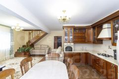 Качество и стиль: В доме выполнен современный качественный ремонт. Лестница и кухонный гарнитур из массива, на полу ламинат 33-го класса и керамогранит. Высота потолков 3 м, качественные пластиковые окна под ламинацию, двери из натурального шпона. Дом очень тёплый и эргономичный. Из мебели и техники остаётся практически всё: кухонный гарнитур с встроенной бытовой техникой (газовая варочная панель, посудомоечная машина, вытяжка), диваны, комоды, стол и стулья из массива, кровати, тумбочки.
