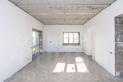 Внутренние работы выполнены с высоким качеством: стены отштукатурены и выровнены под маяк, готовые к поклейке обоев.