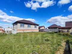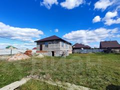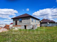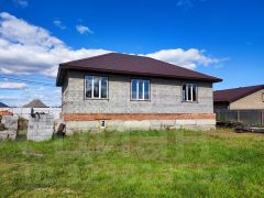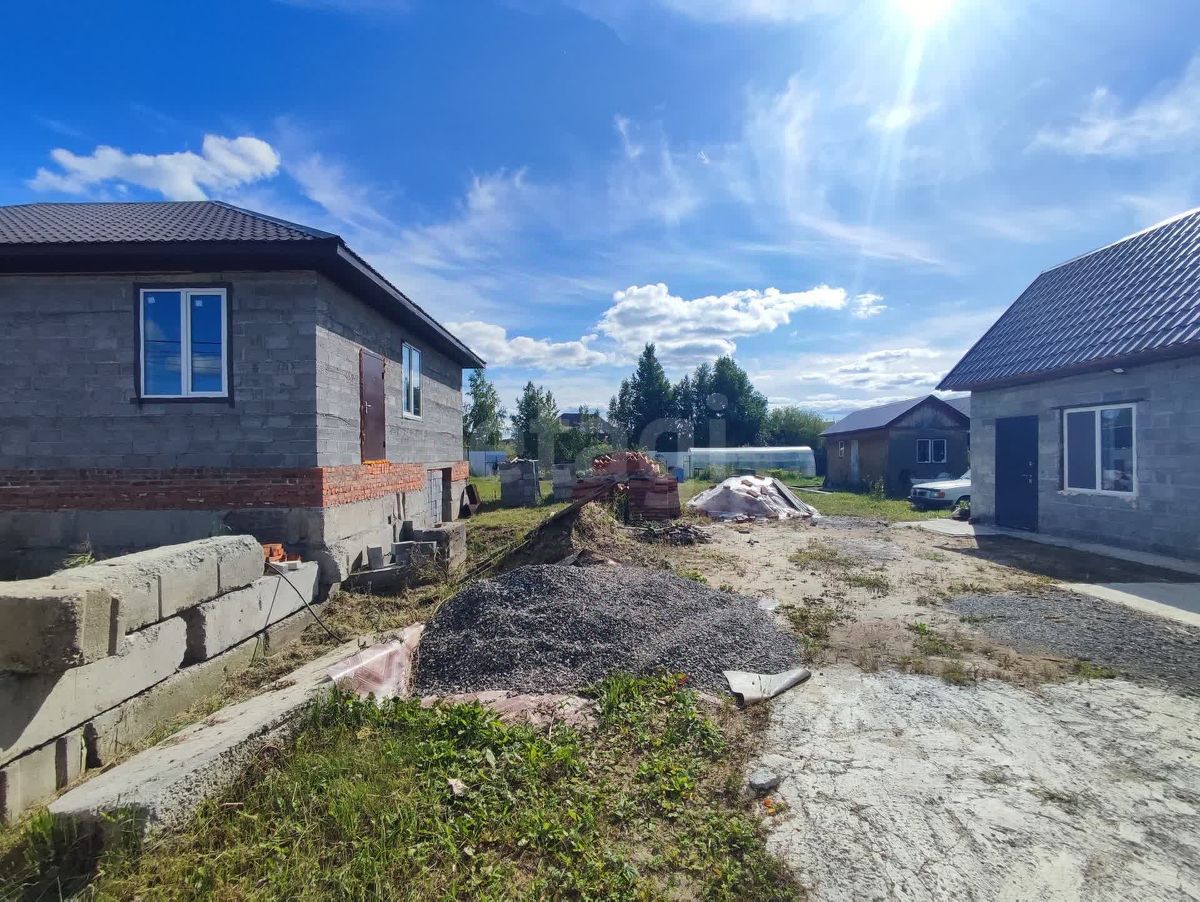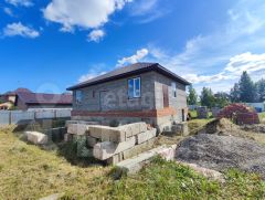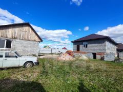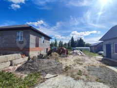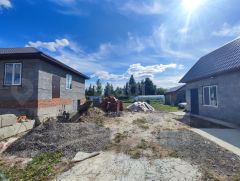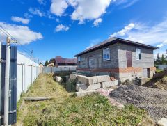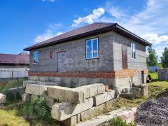 На территории стоит дом 100 кв.м, заведен под крышу, стоят окна, с цокольным высоким этажом.