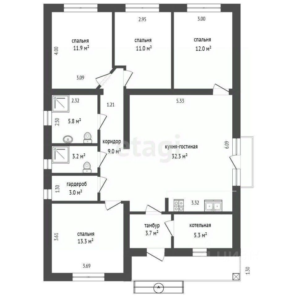 - 4 спальни, два санузлами, гардеробная,котельная,огромная и просторная кухня-гостиная,выход на люк (можно обыграть под себя мансарду.