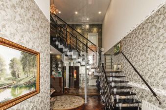 В коттедже сделан очень качественный дорогой ремонт, натуральный паркет, красивая деревянная лестница, потолки ровные из гипсокартона, на стенах дорогие обои.