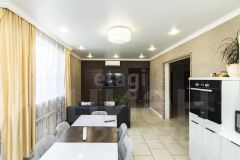 Дом имеет 3 комнаты: 3 отдельные спальни по 12 кв.м. и кухню-гостиную 27 кв.м., отдельная гардеробная, кладовка. В доме выполнен хороший ремонт. Все коммуникации подключены и разведены по дому: электричество, водопровод, отопление, септик, газ, колодец. Цокольный этаж под всем домом, отапливаемый.