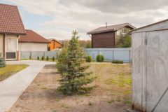 Площадь 10 соток: 28 м по фасадной части, 36 м в глубь. Участок правильной прямоугольной формы. Из насаждений 3 яблони, пионы, сирень, 3 грядки, ели, туи, сосны, земля подготовлена для рулонного газона. Коммуникации на участке: септик 2 кольца, переливной. Абиссинская скважина (грунтовые воды на уровне 3,5 м). Есть откатные ворота, для удобства вы можете установить мотор и у вас будут ворота с дистанционным открытием.