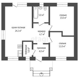 Предлагается к продаже дом, общей площадью 70 м2, формат евро-трешка или 2 плюс, просторная кухня-гостиная, и две полноценные спальни.