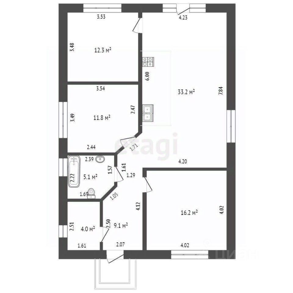 3 спальни 11,8 + 12,3 + 16,2 кв.м.