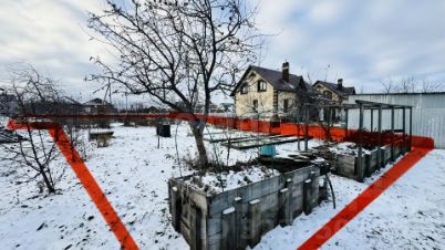 (плодородная почва, мощная глина, нет грунтовых вод), в другой — готовая садовая зона с многолетними посадками (яблони, сливы, малина, смородина, жимолость, вишня).