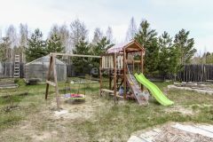 на территори растут яблони, вишня, красная, розовая и черная смородина, жимолость, кедр, сосны, пихта, ель, берёзы, липа, рябина, облепиха, ирга, слива, крыжовник. Также имеется теплица 3*6 с автополивом.