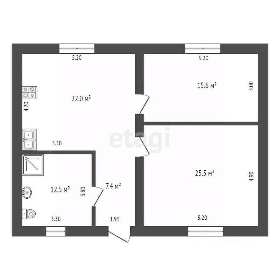 Планировка дома продумана до мелочей: просторная кухня-гостиная площадью 22 м², две изолированные комнаты (26 и 16 м²) и котельная с санузлом (12 м²) обеспечат комфорт и удобство для всей семьи.