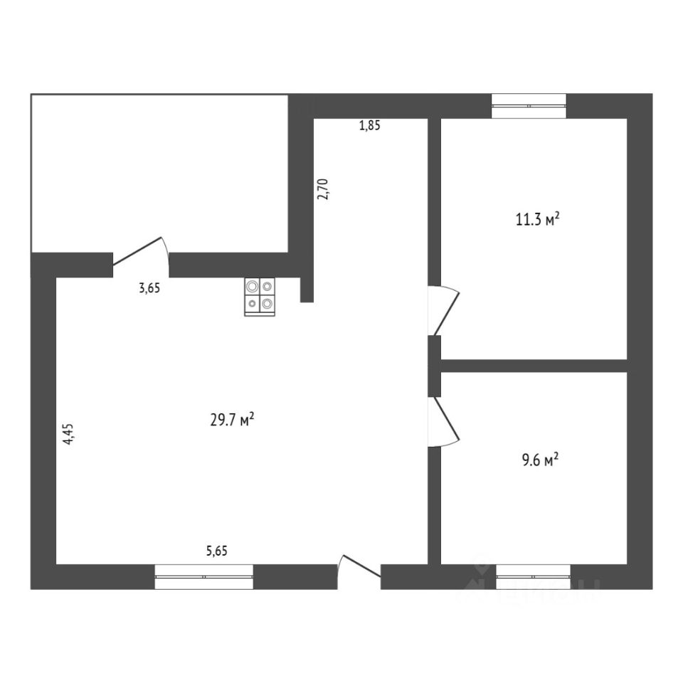 Формат дома 2. Просторная кухня-гостиная, две комнаты и санузел с ванной комнатой.