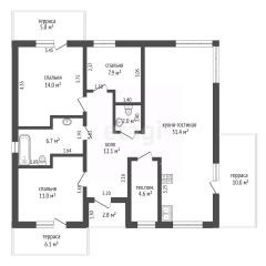 Планировка очень функциональная: 3 отдельные спальни, одну можно использовать под кабинет; 2 санузла, котельная и светлая кухня - гостиная с 3 - мя окнами.