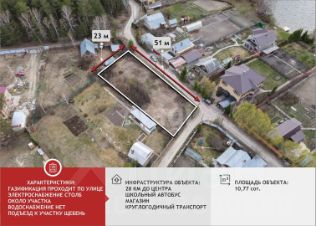 Участок выгодно расположен, недалеко от леса, в 50 мерах от озера, высокое место,асфальт до участка,электричество и газ рядом с участком.
