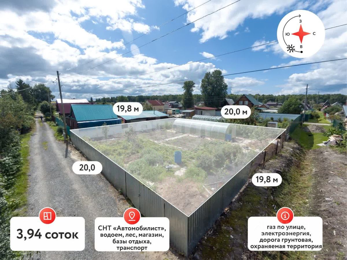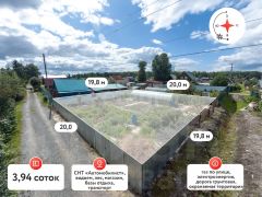 Участок правильной формы, отсыпан, площадью 4 сотки, полностью ухожен и огорожен забором. На участке расположена новая, большая теплица из поликарбоната, имеется колодец, растут многолетние растения: смородина, малина, вишня и многое другое.
