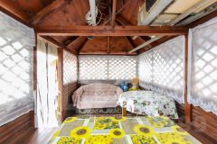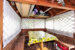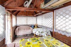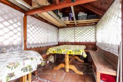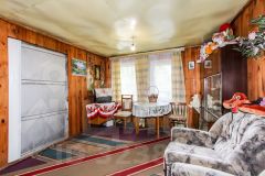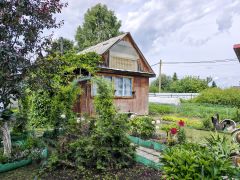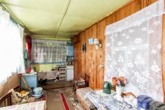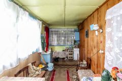 Дача родителей, в собственности одного из них. На участке дом с печным отоплением, 5 на 6 метров, 2 комнаты обшиты изнутри вагонкой, плюс летняя веранда 2 на б метра, второй этаж мансардный обшит вагонкой, не утеплен.