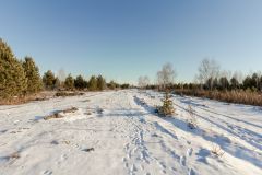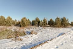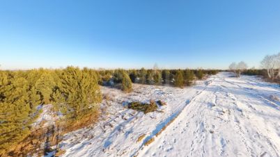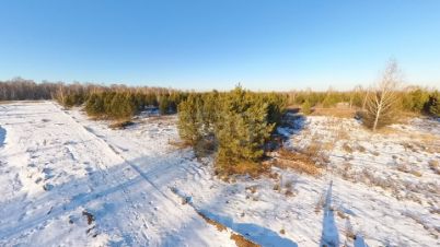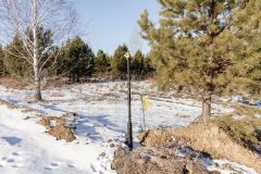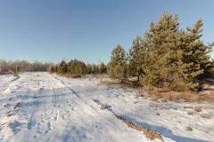 Участок находиться в окружении молодых сосен и многолетних деревьев.