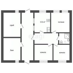 Дом площадью 120 м.кв. со всеми коммуникациями внутри. Водоснабжение и газ - централизованные, отопление газовое. септик на 12 м.куб. Дом добротный, теплый. Включает в себя просторную кухню (15 м.кв, гостиную, две спальни и санузел на первом этаже, а также спальню на втором этаже. Имеется баня, летняя кухня, гараж, подполья, миловидная беседка и хозяйственные постройки. Дом мебелирован и оснащен добротной современной техникой, которые могут остаться в дар новым хозяевам.