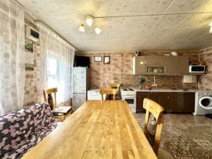 - кухня-гостиная с оборудованной кухонной и обеденной зоной. Вода заведена в дом, все удобства для хозяйки под рукой, установлены стиральная и посудомоечная машины;