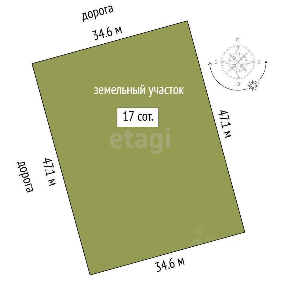 Пpoдaётcя oтличный углoвoй земельный участок плoщадью 17cоток (48*35)