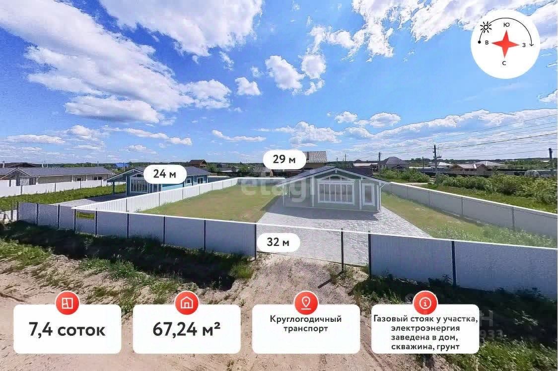 Комфортная и продуманная планировка: кухня-гостиная 24 м2, 2 комнаты по 13 м2, с/у, тамбур и терраса 13 м2. Фундамент — монолитная плита. Кровля — металлочерепица. Материал стен — клееный брус 160х185 мм. Такие дома почти не дают усадки, и заехать в любой из них можно сразу после окончания строительства (при желании можно сделать чистовую отделку). Деревянные стены не требуют дополнительного утепления. Во дворе 2 машиноместа, подведены и обустроены коммуникации — есть септик, скважина, электричество. При желании можно подключить газ. Покупая недвижимость через Компанию "Этажи", Вам гарантирована безопасная сделка. Звоните!.