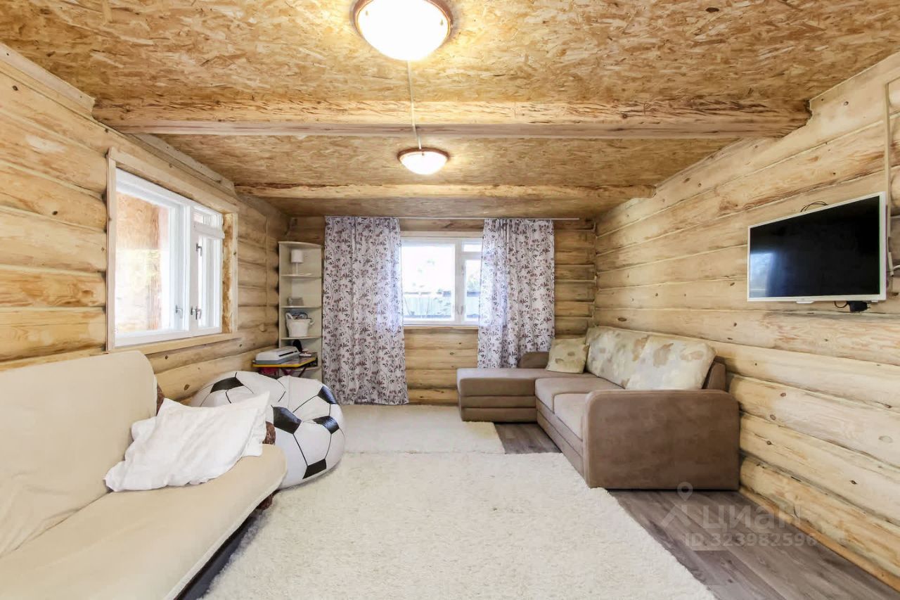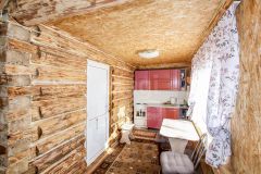 Дом из бревна. Деревяные живые экологичные окна. На первом этаже выполнен хороший ремонт. Просторная светлая комната. Кухня оборудована кухоным гарнитуром, электроплитой, обеденной зоной. На закрытой террасе еще одна небольшая комната и лестница на второй этаж.