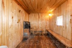 Баня оборудована комнатой отдыха, помывочной и парилкой.