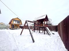 На участке расположена новая баня с мансардой, теплица, детская игровая площадка, гараж, хозяйственная постройка, вольер для собаки.