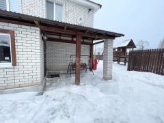 Дом из газоблоков, облицован кирпичом. Фундамент дома ленточный с буронабивными сваями, фундамент утеплен, установлена дренажная система, после дождя вода выводится за пределы участка, поэтому не будет лишней воды.