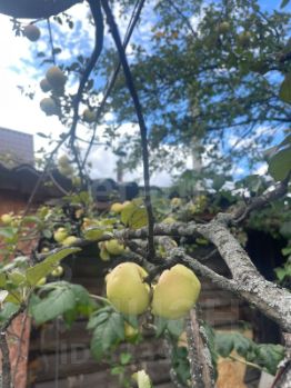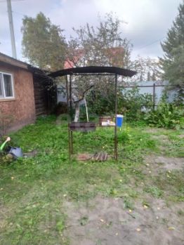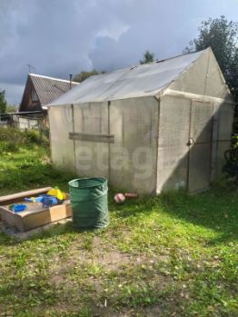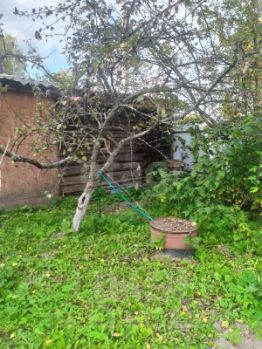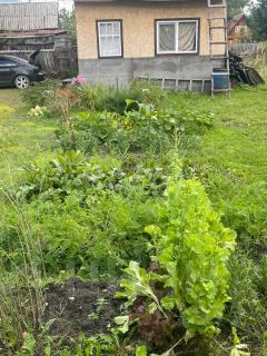 Насаждения: 2 яблони, отлично плодоносят, яблок много, облепиха, ирга, малина, жимолость, крыжовник, смородина, вишня, 4 грядки клубники, цветы, сирень, рябина.