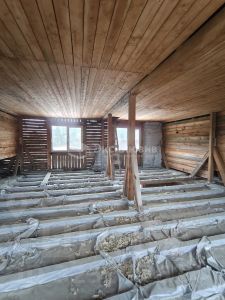 - Брусовой дом в черновой отделке, первый этаж распланирован. При входе с левой стороны санузел, с правой стороны бойлерная, прямо большая кухня гостиная 25 м2, две комнаты. 2-й этаж свободная планировка.