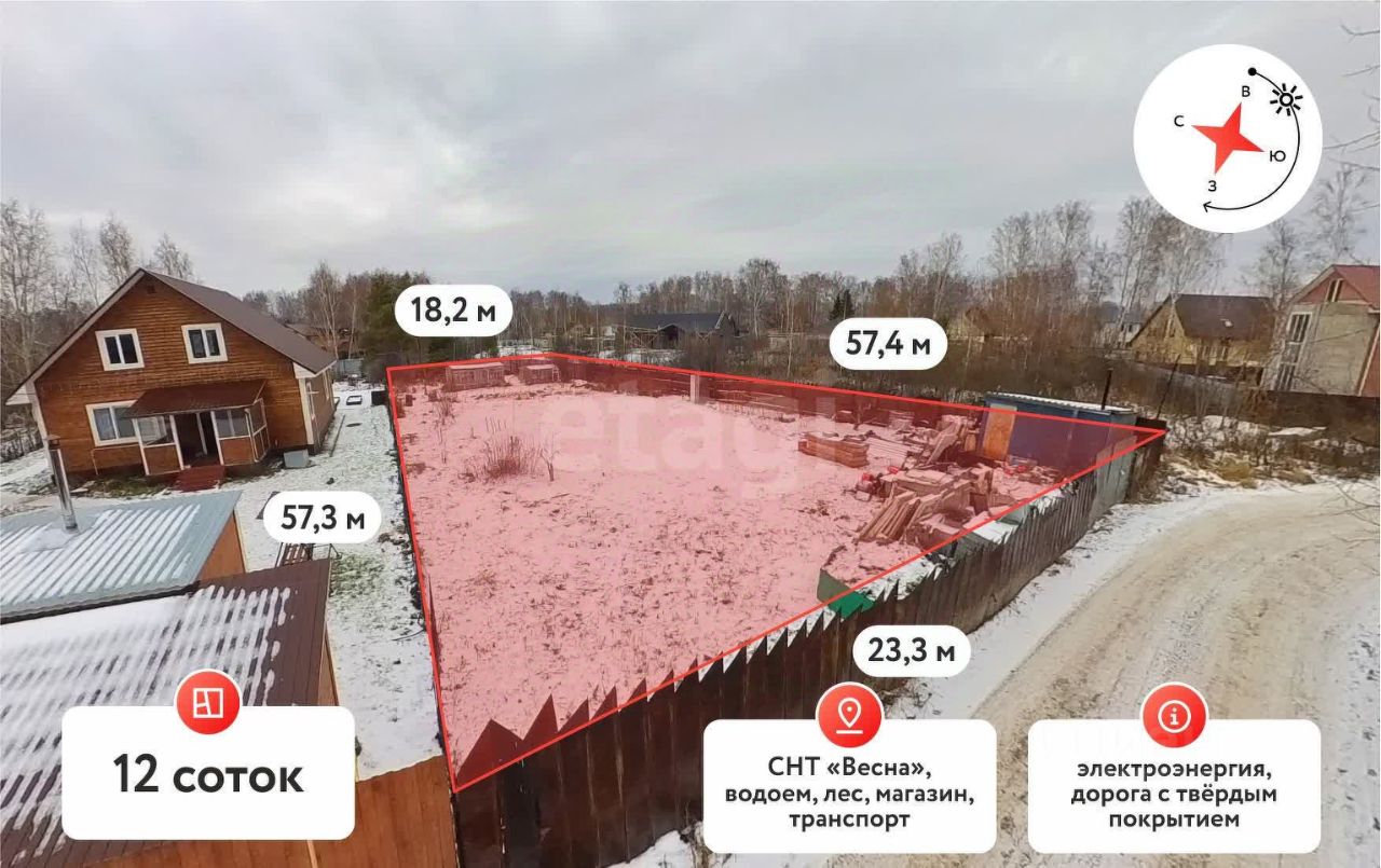 Участок площадью 12 соток в СНТ "Весна" района Метелево, представляет собой готовую основу для строительства загородного дома. Территория правильной прямоугольной формы, что упрощает процесс проектирования и планировки. Участок свободен от строений, предоставляя полную свободу для реализации любого архитектурного замысла и размещения дома в соответствии с личными предпочтениями и нормами. Значительным преимуществом является развитая природная среда: земельный участок обладает множеством зелёных насаждений и плодоносящих деревьев, создающих атмосферу уединенности и естественного ландшафта. Соседние территории включают с одной стороны жилой дом, с другой — пустующий участок, что обеспечивает спокойную обстановку без ощущения тесноты. Ключевым фактором является выгодное расположение: участок находится вблизи городской черты, что гарантирует удобную транспортную доступность. В шаговой доступности расположены школа и детский сад, делая это место практичным выбором для семей с детьми. Инфраструктура посёлка и близость к природе сочетаются здесь с перспективой создания собственного дома с нуля.