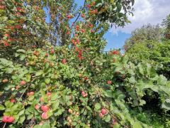 На участке теплица и старая баня, которую можно убрать или использовать как сарай. Посажены деревья и кустарники :слива, яблоня, груша, вишня, смотродина, крыжовник.