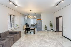 Идеальный вариант для комфортной жизни! В доме 3 изолированные спальни, включая мастер-спальню с отдельной гардеробной и дополнительным санузлом. Просторная кухня-гостиная площадью 40,9 м² с высотой потолка 3 метра и тремя окнами, выходящими на разные стороны, всегда наполнена светом. Выход на террасу с прекрасным видом, без загораживающих построек соседей.