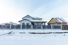 Отделка фасада дома - комбинированная - керамический кирпич цвета Графит и бесшовным металлосайдинг серого цвета. В качестве утеплителя использовали - минеральную вату Кнауф. Крыша дома из металлочерепицы Европа. Окна рехау с пятикамерным профилем, тройным остеклением и наружной ламинацией. При строительстве сразу предусмотрели все магистрали. Дом круглосуточно находится под видеонаблюдением. По углам дома установлены видеокамеры.