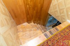 - Первый этаж: просторная кухня-гостиная, кабинет для работы или отдыха, санузел и удобная входная группа с коридором. Из кухни-гостиной есть выход на террасу, где можно проводить тёплые вечера на свежем воздухе. Пол на первом этаже оборудован системой тёплого пола, что создаёт дополнительный комфорт в холодное время года.
