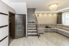 Просторный кирпичный дом площадью 292 кв.м расположен на благоустроенном участке 15.25 соток в спокойной локации, что создает идеальные условия для постоянного проживания большой семьи. Планировка отличается рациональностью: на первом этаже находятся прихожая, две комнаты, кухня и санузел, а также два технических помещения с потенциалом для переоборудования. Второй этаж занимает три изолированные спальни и полноразмерный санузел с ванной комнатой. Ключевым преимуществом является наличие цокольного этажа и встроенного гаража на два автомобиля с мастерской зоной. Дополнительную функциональность обеспечивают банный комплекс с комнатой отдыха и отдельное помещение с входом с улицы для хранения урожая и домашних заготовок. Конструктивные особенности подчеркивают надежность объекта: мощный фундамент в виде армированной плиты и ростверка, полнотелый кирпич стен, усиленная стропильная система и кровля из мягкой черепицы. Во всех помещениях предусмотрены вентиляционные каналы и подготовленные трассы для установки кондиционеров. Ухоженная территория с плодовым садом, включающим яблони, груши, вишни, ягодные кустарники, предоставляет возможности для садоводства и организации зоны отдыха. Проектом предусмотрено оптимальное естественное освещение всех помещений в течение дня.