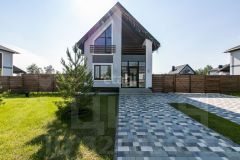 Дом площадью 140,3 м², с террасой, расположен на участке 7,5 соток с елями, газоном, дорожками из брусчатки и приятными видами. Здесь всегда намного тише, чем в городе. Всегда чище воздух. И всегда чуть больше хочется жить не спеша.