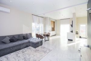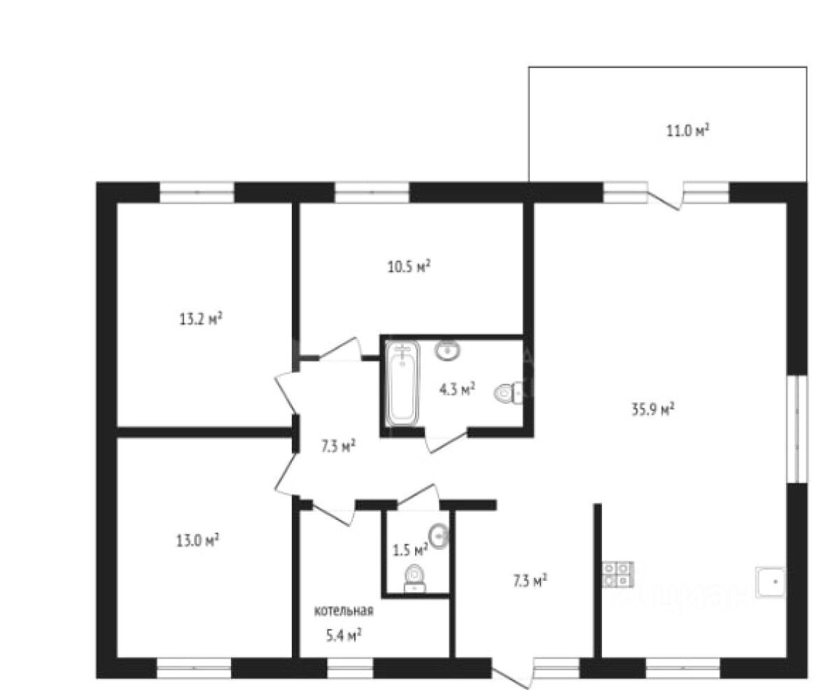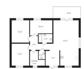 В доме просторная светлая кухня-гостиная, три уютные спальни, котельная и санузел. Полузакрытая терраса — отличное место для семейных вечеров и отдыха на свежем воздухе.