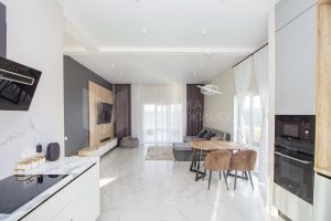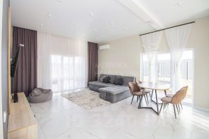 Дом выполнен с применением современных материалов и технологий: монолитный фундамент, стены из керамзитобетона, фасад оформлен фасадной штукатуркой "Короед" и планкеном. Крыша утеплена эковатой, установлены тройные стеклопакеты и прочная железная входная дверь. Тёплые полы по всему дому, качественная стяжка и кондиционер обеспечат уют в любое время года.