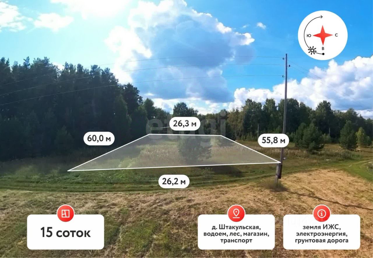 Продается прекрасный участок в д. Штакульская, по Велижанскому тракту, Нижнетавдинского района. Подойдет под строительство загородного дома вашей мечты. Очень красивое, живописное место. Рыбалка, грибы, ягоды. Озера - Штакуль 350 м., озеро Янтык в 5 км., озеро Сундукуль, река Иска в 10 км., все рядом! Тишина и спокойствие от городской суеты. Дорога до деревни асфальтирована. Маршрут автобуса 152 проходит в 2 км от деревни. Ближайшая инфраструктура в с. Тюнево (школа, детский сад, поликлиника, магазины, банки). Категория земель- ИЖС.