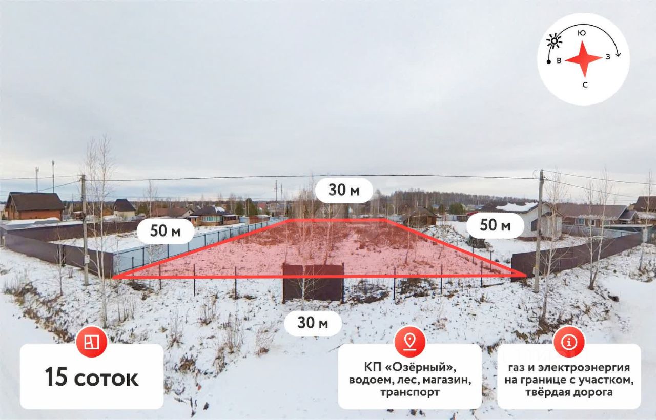 Продается земельный участок площадью 15 соток в коттеджном поселке "Озерный" в районе Перевалово. Участок обладает выгодным расположением: по лицевой стороне проходит асфальтированная улица, с тыльной стороны — пешеходная аллея, что обеспечивает удобный подъезд и спокойную среду. Территория огорожена по периметру сеткой "рабицей", с боковыми границами, обозначенными соседними участками. К границам участка подведены магистральные сети газа и электричества, что значительно упрощает и удешевляет процесс строительства. Поселок застроен на три четверти, инфраструктура сформирована и включает необходимые объекты для комфортного проживания. Развитая транспортная доступность позволяет добраться до городской объездной дороги в течение 10 минут, обеспечивая быструю связь с городом. Данный участок представляет собой готовый ресурс для реализации проекта загородного дома в обжитом и перспективном районе.