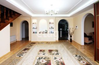 ВНИМАНИЕ!!! Снижена цена на ноябрь. Спешите купить!!!Выставлен на продажу просторный,290 квадратных метров,двухэтажный дом.В доме газовое отопление,централизованное водоснабжение и своя канализационная система.Во всём доме сделан очень хороший,качественный ремонт.Почти везде сделаны фигурные подвесные потолки,на стенах качественные обои,на полу ламинат.Пол в столовой-кухне,расположенной на первом этаже,в зоне кухни выложен плиткой.Так же имеется летняя кухня,в сезон заготовок всё необходимое можно готовить там.Возле дом большой ,разработанный и удобренный,земельный участок,а так же баня,два гаража,сарай , беседка и теплица.Около самого дома сделана зона отдыха,посажены декоративные кустарники,розы и лужайка,засеена газонной травой.Так же есть красивый ,декоративный пруд и небольшой фонтан.Под всем домом просторный подвал,в котором размещены тренажёры ,а так же кладовая для заготовок и находиться газовый котёл и фильтры.Дом очень хороший,никакой ремонт не требуется,заходи и живи.Район,где расположен дом,тихий,спокойный.Автобусы ходят регулярно..Заинтересовались,звоните.торг уместен!