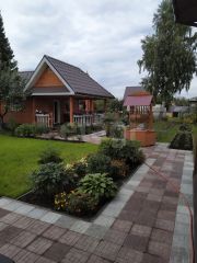 Во дворе есть колодец и скважина (49 м), а перед домом уютная лужайка с двумя елями, одной из которых голубой. Установлена садовая качель на четыре места. Благоустройство включает бетонные тротуарные дорожки и стоянку для двух автомобилей (работы выполнены в 2020 году).