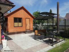 На ухоженном участке также расположена мастерская (4x4 м) на сваях с отделкой вагонкой, а под ней металлический погреб (8 м) с удобной лестницей. Летний туалет и мангальная зона с крышей (2x2 м) с мангалом и печью под казан создадут идеальные условия для отдыха на свежем воздухе.