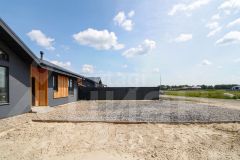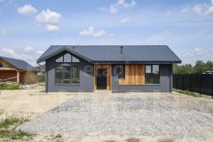 В доме: кухня-гостиная S=26,87 м2, 2 спальни: S1=13,43 и S2=11,21 м2, санузел S=7,03 м2 и котельная S=5,67 м2.