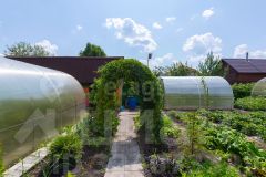 Тротуарная плиткаОгород и сад с насаждениямиТри теплицыКирпичный подсобный домик площадью 15 кв.м с печью