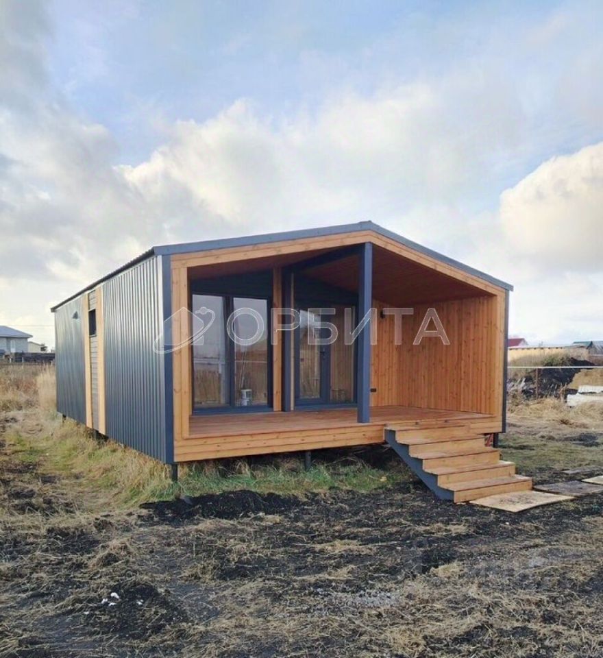 Полезная площадь дома: кухня-гостиная (18 м²), спальня (7 м²), санузел (3 м²), просторная терраса (14 м²).