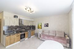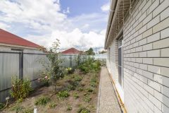 Просторная кухня-гостиная с встроенным кухонным гарнитуром, электроплитой и посудомоечной машиной.Две изолированные комнаты — идеально подходят для отдыха или работы.Большой совмещённый санузел с современными удобствами.Забор с откатными воротами обеспечивает безопасность и приватность участка.По всему периметру выполнена отмостка для защиты фундамента.