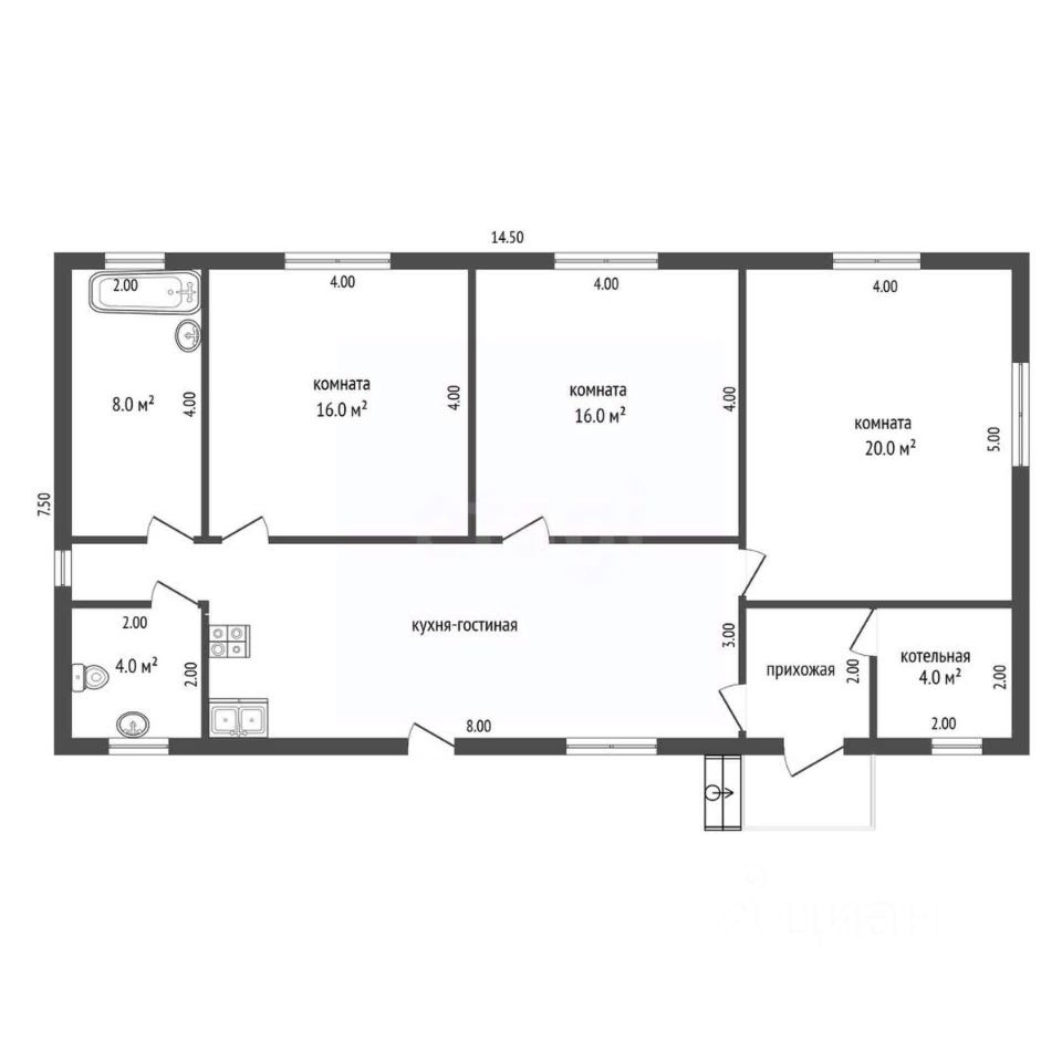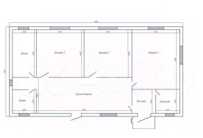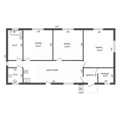 В доме 3 комнаты: кухня-гостиная - 32м2 и три спальни, планировка очень удобная.