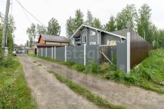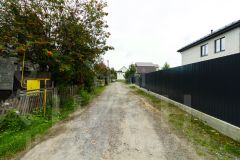 Забор из профнастила с откатными воротами. Участок ровный, расположен в очень хорошем месте. Рядом порядочные соседи, живут круглогодично. Хороший подъезд и широкая дорога до дома обеспечат вам удобство и комфорт.