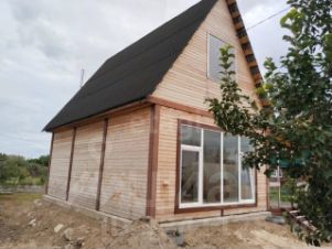 Общая площадь жилого дома 60м2,высокие потолки, 2.6 м первый этаж и 2.4 второй этаж. Отопление электрическое,с GSM модулем и управлением с телефона.Зимой комфортно.